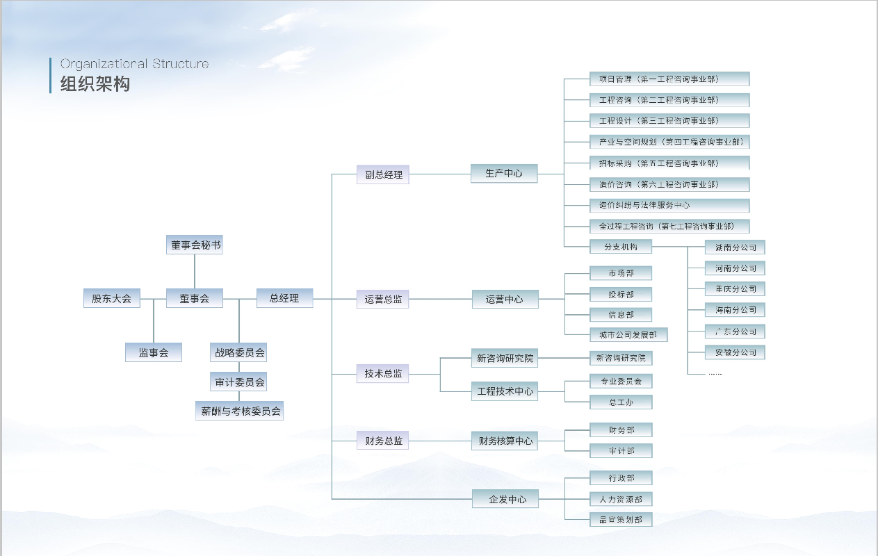公司下設(shè)工程咨詢事業(yè)部、招標(biāo)代理事業(yè)部、工程造價咨詢事業(yè)部、規(guī)劃設(shè)計事業(yè)部等機構(gòu)...