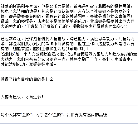 開(kāi)堂的第一節(jié)課,他以《打開(kāi)企圖心》為主題,以提問(wèn)為主的方式,激發(fā)線上線下的學(xué)員深入思考:我們?yōu)楹味鴬^斗?我們因何而得到?既不是秀才(編者注:此語(yǔ)境下的含義為生活優(yōu)渥者)也不是落榜者(編者注:此語(yǔ)境下的含義為因失敗而發(fā)憤圖強(qiáng)者)的我們又當(dāng)以什么作為自身前進(jìn)的動(dòng)力?……