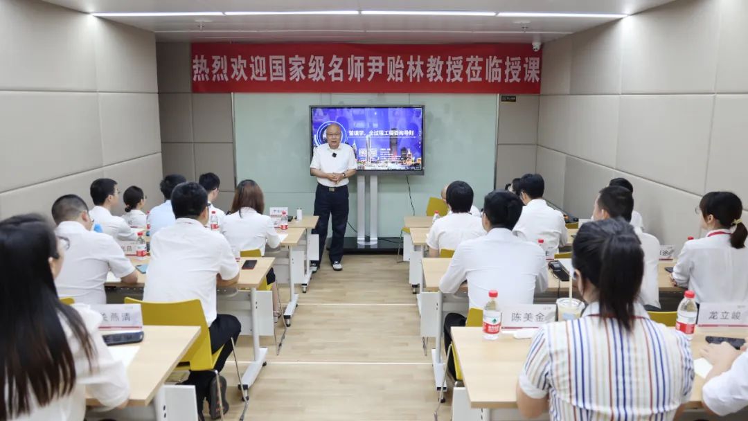 鐘泉董事長為尹教授到來授課表示熱烈的歡迎與崇高的敬意。鐘泉董事長從1997年開始就跟隨尹教授學習,在作為造價工程師以至成為一家工程咨詢企業領導者的職業道路上,一直都深受尹教授思想影響。他是尹教授多年來在全國各地講課的忠實聽眾,深為尹教授的高深思想與授課魅力折服,他表示,能夠邀請尹教授為工程咨詢行業的“未來之星”授課,是一件代表著行業發展“薪火相傳”的大事情。
