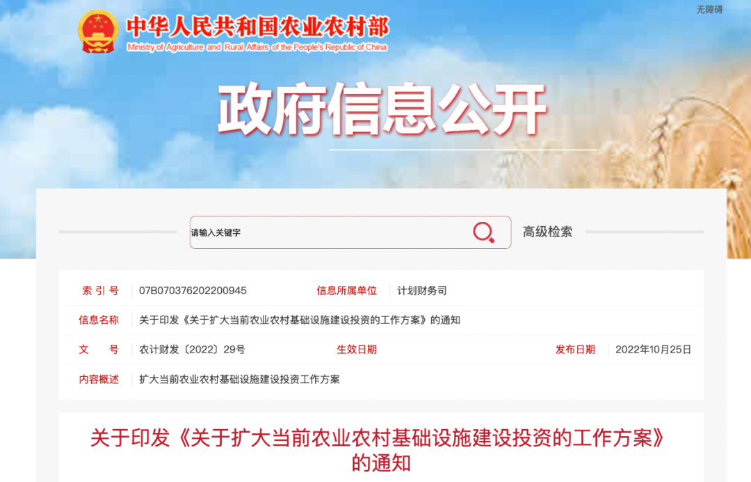 加強農業農村基礎設施建設,是擴大有效投資、穩住經濟大盤的重點任務,有利于增強食物保供能力、帶動基礎產業發展、暢通城鄉經濟循環,具有長遠的重要性和現實的緊迫性。9月21日國務院常務會議審議通過了《關于擴大當前農業農村基礎設施建設投資的工作方案》,現印發給你們,請認真貫徹落實。