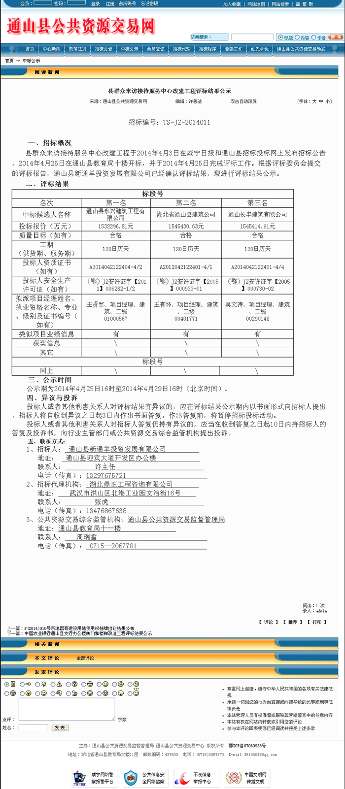 縣群眾來(lái)訪接待服務(wù)中心改建工程評(píng)標(biāo)結(jié)果公示