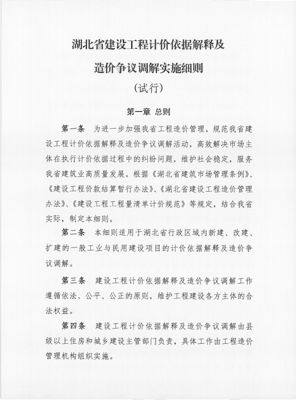 《湖北省建設(shè)工程計(jì)價(jià)依據(jù)解釋及造價(jià)爭議調(diào)解實(shí)施細(xì)則(試行)》