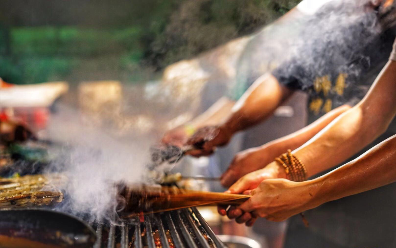 安陸燒烤好吃的關(guān)鍵是集成效應(yīng)最大化。首先是選食材,安陸燒烤注重食材的本味,選用的食材要優(yōu)質(zhì)的、新鮮的,從源頭上確保食品安全。其次是穿串手藝,從肉類到蔬菜,從飛禽走獸到生猛海鮮,從家常蔬果到無名野菜,處理好才能體驗極致的鮮嫩口感;接著是世世代代與燒烤打交道的安陸人研制出來配置的各種香料心得,讓看起來大同小異的燒烤有了許多有趣的靈魂;最后是燒烤技術(shù),猛火炙烤,小火催熟,一把鹽、一把孜然、一把辣椒,豐富的油脂滴在木炭上,升騰起一陣猛火。每一道工序都不能少,每一個步驟都不容絲毫馬虎,多個專業(yè)集成才能制作出美味的安陸燒烤。