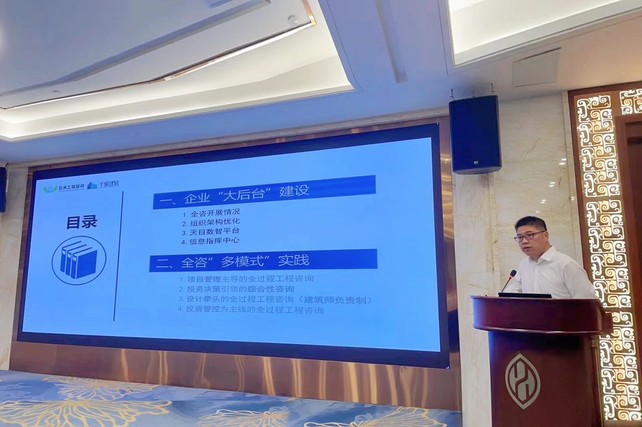 五洲工程顧問集團有限公司執(zhí)行總經(jīng)理柴恩海做了《全過程工程咨詢探索實踐》的主題報告,基于行業(yè)全咨標(biāo)桿企業(yè)轉(zhuǎn)型發(fā)展的實際,詳細(xì)介紹了公司全咨“大后臺”建設(shè)和全咨模式的實踐兩個方面的做法和經(jīng)驗,以及通過數(shù)字化平臺建設(shè),賦能全咨業(yè)務(wù)發(fā)展,并對當(dāng)前全咨發(fā)展提出了相關(guān)建議。