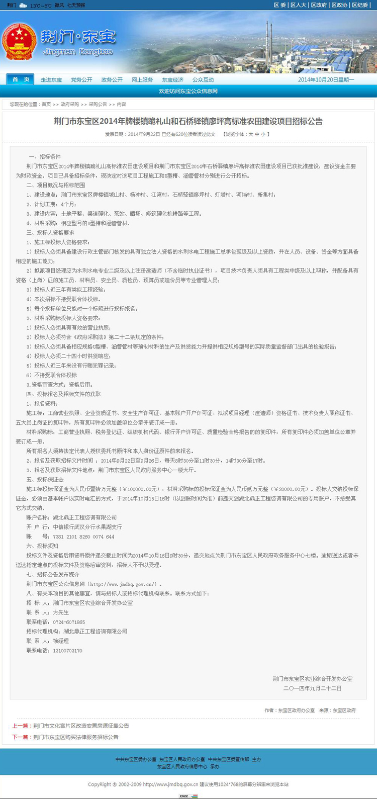 荊門市東寶區(qū)2014年牌樓鎮(zhèn)跪禮山和石橋驛鎮(zhèn)廖坪高標(biāo)準(zhǔn)農(nóng)田建設(shè)項目