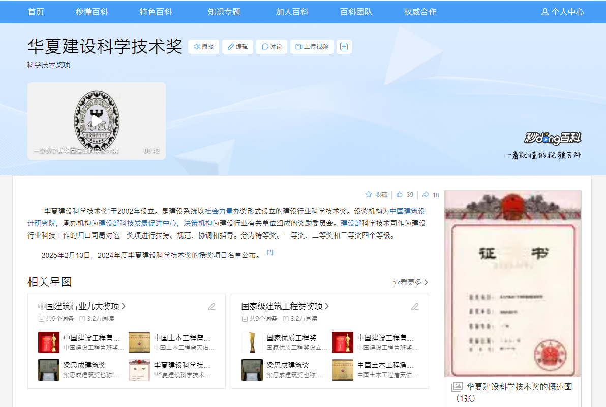 “華夏建設科學技術獎”于2002年設立,是中國建筑行業九大核心獎項之一,與魯班獎、詹天佑獎等齊名。該獎項經國家科技部批準設立,是建設系統以社會力量辦獎形式設立的全國建設行業最高科學技術獎項。其旨在獎勵在建設行業工作中有重要貢獻的組織和公民,貫徹科教興國戰略,促進科技成果向生產力轉化,推動科技進步、提升技術水平、培養科技人才,全面提升我國建設行業綜合科技創新水平。