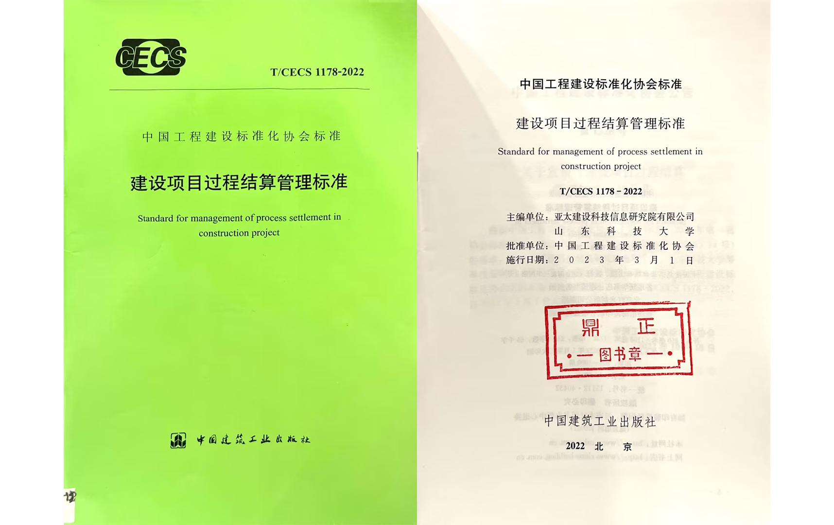 鼎正參與編制的《建設項目過程結算管理標準》(T/CECS 1178-2022)通過專業組和評審委員會的兩級評審,從700余個報送項目中脫穎而出,榮獲2024年度華夏建設科學技術獎三等獎。